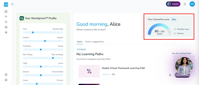 CultureFlex is a dynamic learning tool that provides simulations, real-life scenarios, and personalized action plans to help you continuously improve your cultural flexibility. Whether you're working with international clients, leading diverse teams, or navigating new business environments, CultureFlex ensures you have the skills to succeed globally.