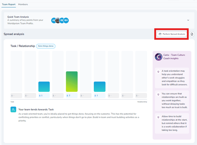 Want to see where your team’s styles vary most? Just click ‘Perform Spread Analysis’ to reorder the dimensions from the most diverse to the most aligned.
