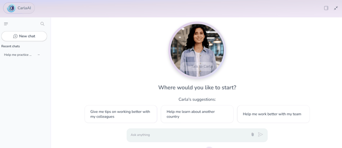 As a powerful learning tool, Carla assists you with instant cultural intelligence guidance reviewing your unique cultural scenarios to avoid bias. Regular discussions with Carla deepen your understanding of how culture influences behavior, helping you to thrive in your professional life.
